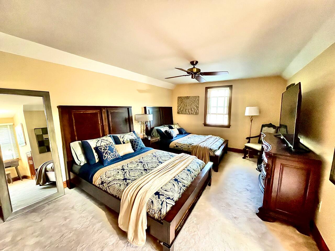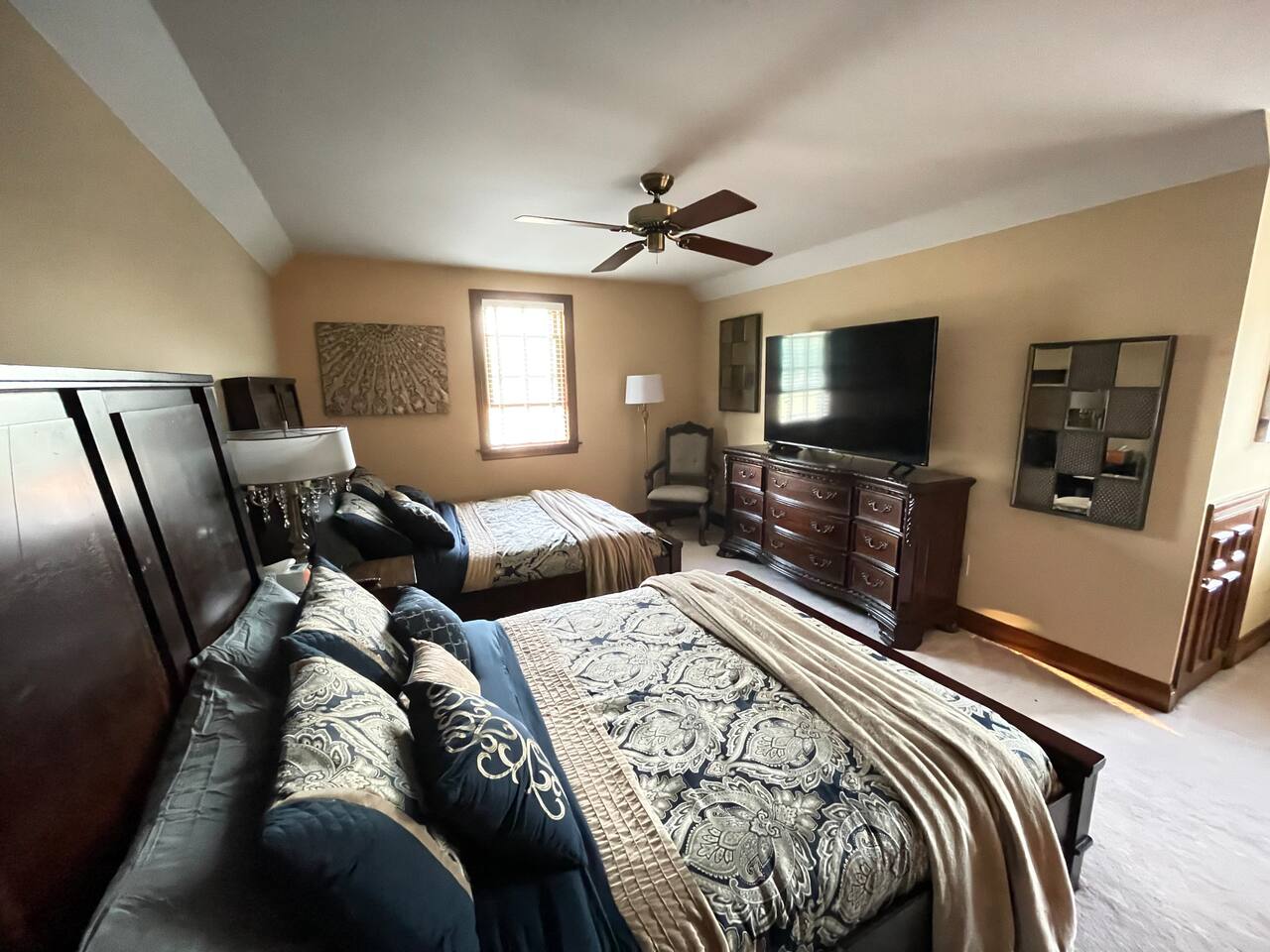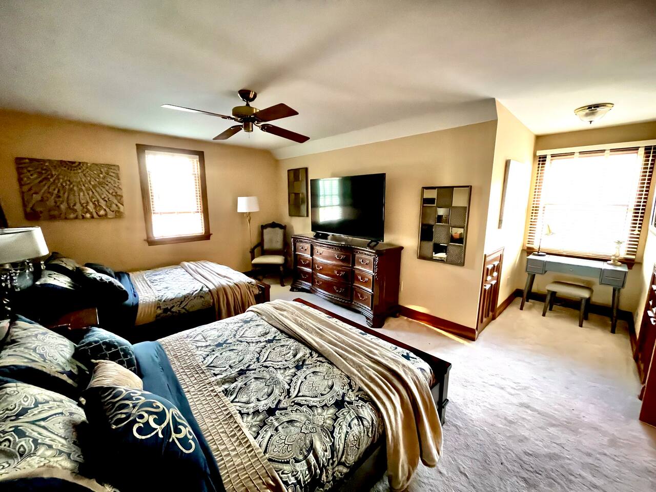 This suite, located on the private floor, features two Queen beds, large dresser, vanity, chair, bench, and more. It has a private full bathroom with a shower and tub. The room has views of the pond and pool. Perfect for families traveling with children or a group of friends. Enjoy modern amenities including TV, Wi-Fi and more. The room is wonderful but it is actually the least awesome feature of our farmstay. What everyone loves most about this farm is the outdoor area and vibe. Locals and tourists alike adore this property as it has such a unique layout. The visual beauty of the property is not where the experience ends. Wait until you meet our herd of alpacas, miniature horse, pony, bunnies, exotic breed chickens, ducks, geese, wild birds, and barn cats. Animal lovers won’t want to leave. You can book a formal farm tour to hear the story of how Charity’s Hope Family Farm came to be. Every animal has a story as most of them were rescues. Our family has a story. This area is rich in history. More importantly, the area has a bright future as people discover the joys of new-age farming and welcome the much-needed innovation in the agricultural industry.