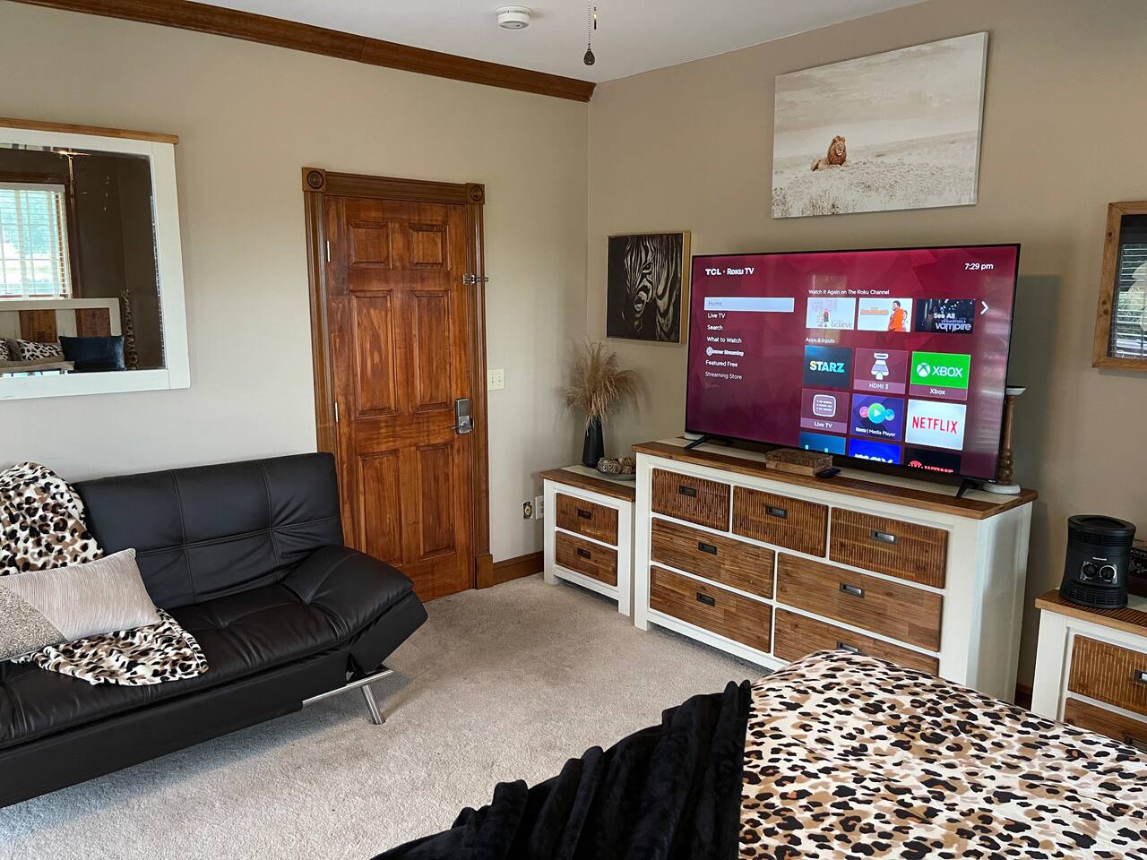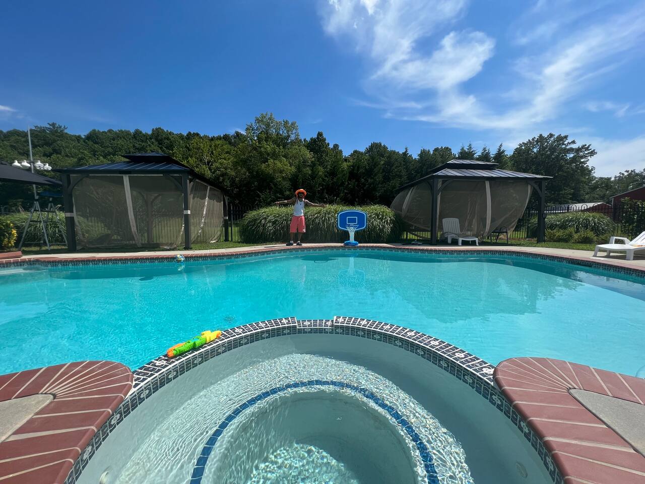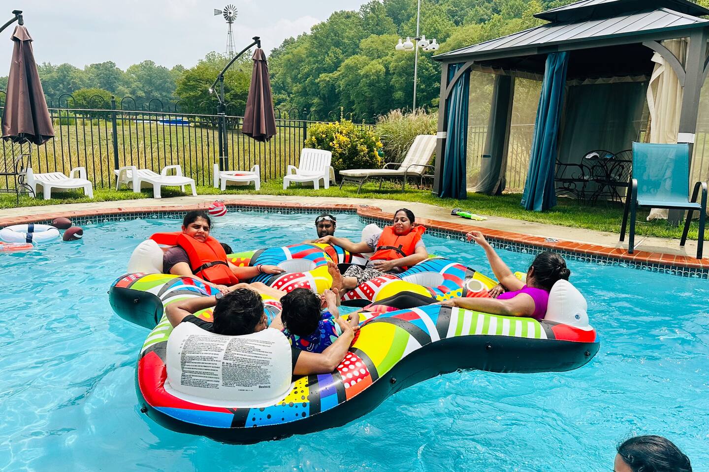 Guest have exclusive access to the home (minus attached staff suite/area), pool, and patio area. Guests also have access to the resort which is shared with other visitors to the farm. All that we ask is that guest NEVER enter barns or pasture areas without a co-host accompanying them. This is to ensure safety of our animals and guests. Barns and buildings are strictly off-limits but farm tours can be arranged. We have an amazing list of free and paid amenities and attractions including go kart, golf cart, kayak, inflatable pontoon, golf simulator, fishing, hiking, farm tours, 20-foot inflatable outdoor movie screen and projector, Bluetooth speakers, pool toys, basketball hoop, kick ball, cabanas, giant checkers, small moonbounce, board games, and much much more. Ask our hosts for our onsite Amenities and Attraction List. Guests may also rent exotic cars and passenger vans and have vehicle delivered. We refer our guests to Acclaimed Rentals LLC which can be found on Turo. All guests must sign our liability waiver before exploring the farm. Only guests included in reservation are allowed on the property. This is strictly monitored and enforced. The general public can buy general admission tickets to access the resort using EventBrite. If guests want to host a private event for more people, they can inquire about renting our event space (barn).
