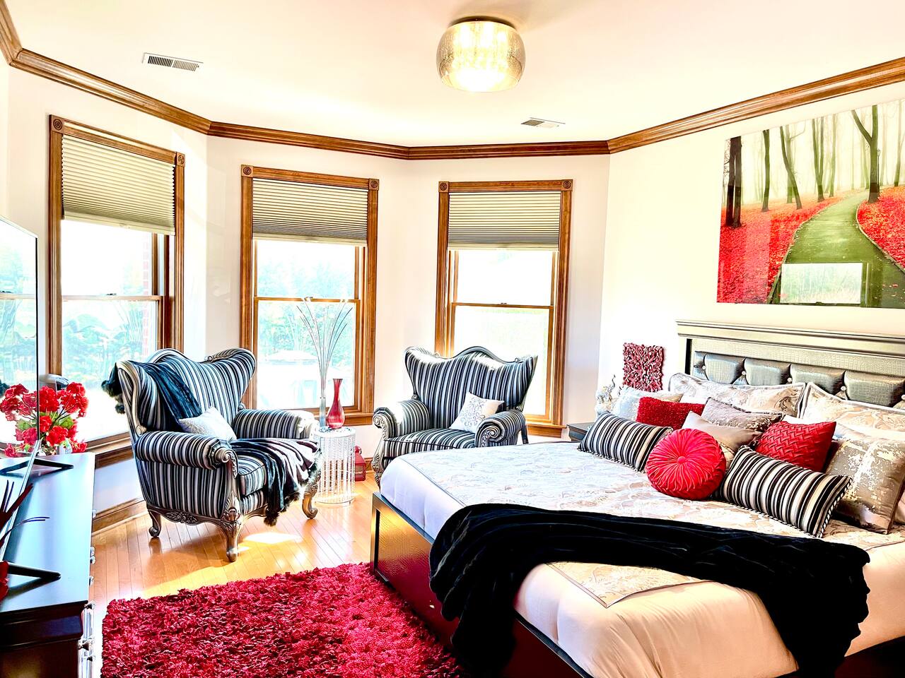This unique farmstay on a 20-acre working farm features use of an all brick Victorian-style home that includes five bedrooms and three bathrooms that accommodate several guests comfortably with a great deal of privacy. Guests will share the 20-acre farm resort grounds with other visitors and staff but will have exclusive use of the home, pool, and patio are included with this booking. If you are interested in exclusive use of the entire resort, please inquire. All beds are king or queen beds. Enjoy modern amenities including TV, wifi and ethernet internet, a business center. There is a dining room with a huge table that seats 14 people. The home boasts a modern chic feel contrasted with a rustic flavor that makes for a very unique interior design experience. You’ll easily forget you are staying on a farm because we spared no expense in making the decor very interesting. We have a salt water inground pool and attached whirlpool open 24/7 from mid-May to September (weather permitting). The pool area features two large cabanas with mosquito nets, furnishing, and privacy curtains. The pool area has plenty of lounge chairs and pool toys. Don’t be surprised if an alpaca walks up to the pool fence to check on you. We designed our pasture area to circle the home so that guests can enjoy views of them through the windows. It’s pure bliss seeing them. The home is wonderful but it is actually the least awesome feature of our farmstay resort. What everyone loves most about this farm are the animals, outdoor area, and the rural peaceful vibe. Locals and tourists alike adore this property as it has such a unique and beautiful layout. The visual beauty of the property is not where the experience ends. Wait until you meet our herd of alpacas, mini-cow, mini-donkeys, emus, bunnies, exotic breed chickens, ducks, geese, wild birds, and a livestock guardian dog. Animal lovers won’t want to leave. You can book a formal farm tour to hear the story of how Charity’s Hope Family Farm came to be. Every animal has a story as most of them were rescues. Our family has a story. This area is rich in history. More importantly, the area has a bright future as new people discover the joys of new-age farming and welcome the much-needed innovation in the agricultural industry called agritourism. Book this home to create lasting memories with your friends, family, colleagues, or organization. You won’t regret it. Please note: We have an attached staff area that is off limits to guests for storage and laundry. Staff do not live onsite and never enter the home during guests’ reservations unless guests need assistance.