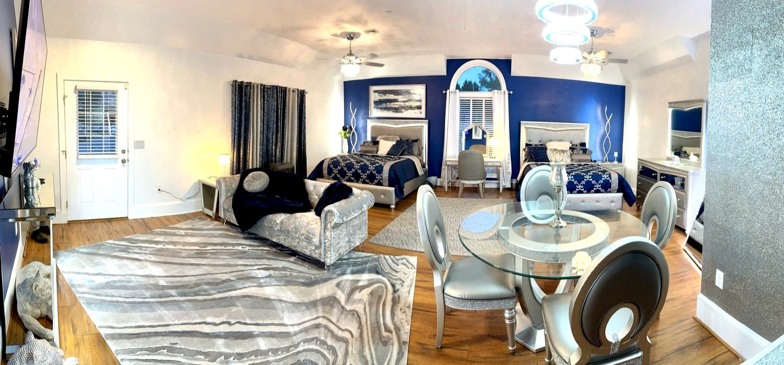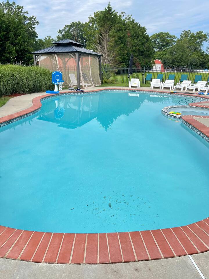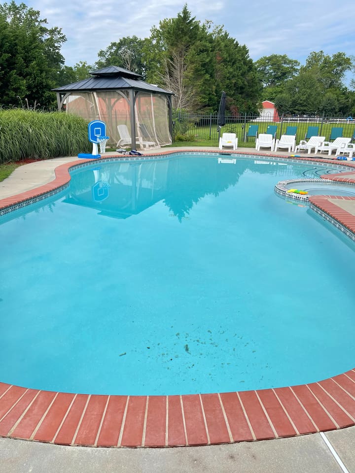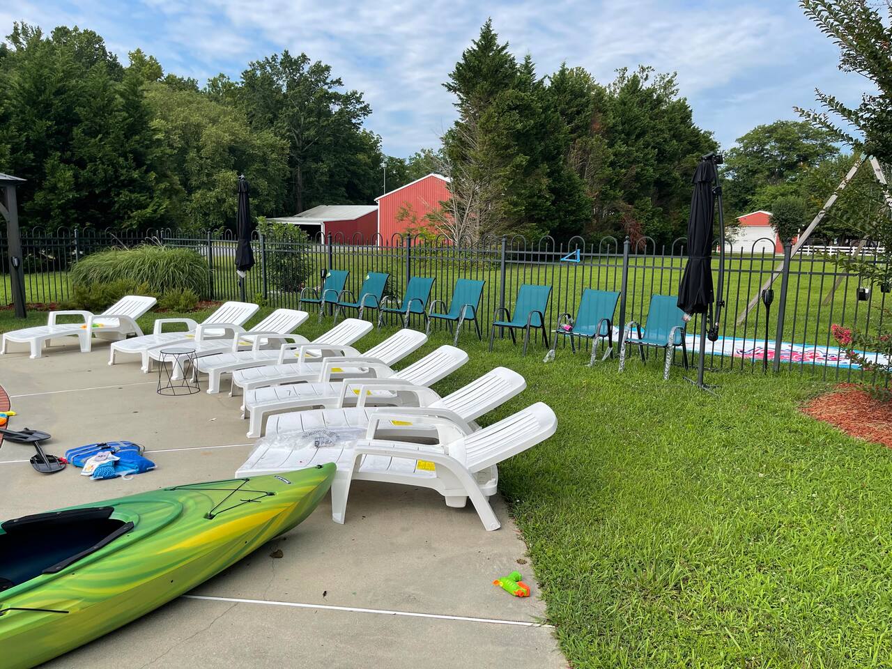 Guest have exclusive access to the home (minus attached staff suite/area), pool, and patio area. Guests also have access to the resort which is shared with other visitors to the farm. All that we ask is that guest NEVER enter barns or pasture areas without a co-host accompanying them. This is to ensure safety of our animals and guests. Barns and buildings are strictly off-limits but farm tours can be arranged. We have an amazing list of free and paid amenities and attractions including go kart, golf cart, kayak, inflatable pontoon, golf simulator, fishing, hiking, farm tours, 20-foot inflatable outdoor movie screen and projector, Bluetooth speakers, pool toys, basketball hoop, kick ball, cabanas, giant checkers, small moonbounce, board games, and much much more. Ask our hosts for our onsite Amenities and Attraction List. Guests may also rent exotic cars and passenger vans and have vehicle delivered. We refer our guests to Acclaimed Rentals LLC which can be found on Turo. All guests must sign our liability waiver before exploring the farm. Only guests included in reservation are allowed on the property. This is strictly monitored and enforced. The general public can buy general admission tickets to access the resort using EventBrite. If guests want to host a private event for more people, they can inquire about renting our event space (barn).