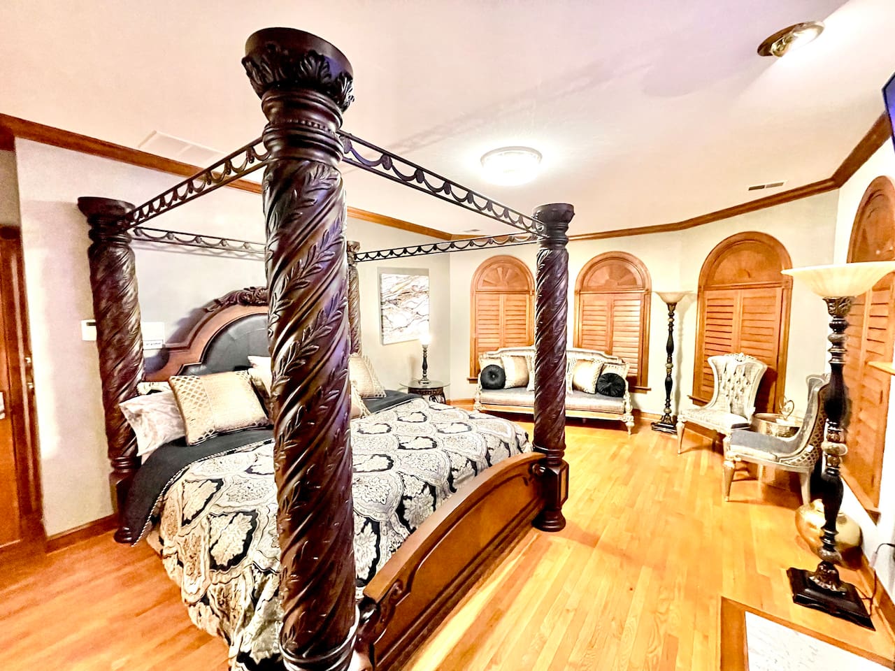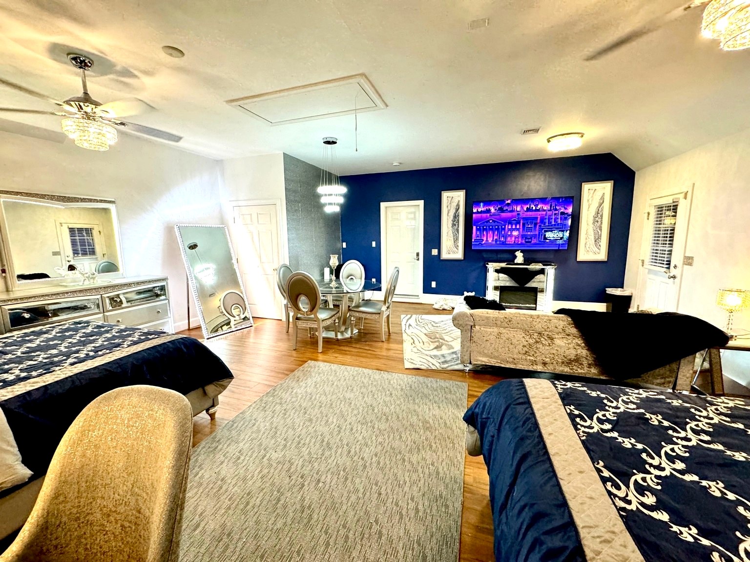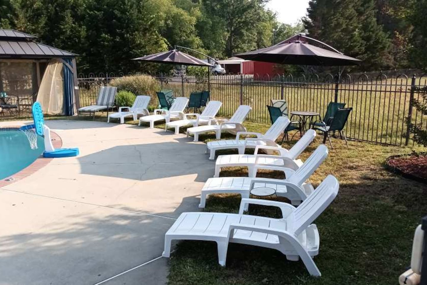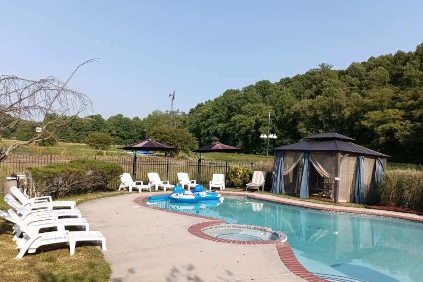 Guest have exclusive access to the home (minus attached staff suite/area), pool, and patio area. Guests also have access to the resort which is shared with other visitors to the farm. All that we ask is that guest NEVER enter barns or pasture areas without a co-host accompanying them. This is to ensure safety of our animals and guests. Barns and buildings are strictly off-limits but farm tours can be arranged. We have an amazing list of free and paid amenities and attractions including go kart, golf cart, kayak, inflatable pontoon, golf simulator, fishing, hiking, farm tours, 20-foot inflatable outdoor movie screen and projector, Bluetooth speakers, pool toys, basketball hoop, kick ball, cabanas, giant checkers, small moonbounce, board games, and much much more. Ask our hosts for our onsite Amenities and Attraction List. Guests may also rent exotic cars and passenger vans and have vehicle delivered. We refer our guests to Acclaimed Rentals LLC which can be found on Turo. All guests must sign our liability waiver before exploring the farm. Only guests included in reservation are allowed on the property. This is strictly monitored and enforced. The general public can buy general admission tickets to access the resort using EventBrite. If guests want to host a private event for more people, they can inquire about renting our event space (barn).